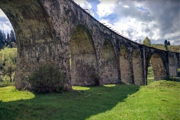 Усі, хто подорожує залізницею до Рахова чи Івано-Франківська, обов’язково звертають увагу на унікальний міст. Фотографії цього віадука — немов кадри з фільмів про Гаррі Поттера. От тільки радимо не ходити рейками, а споглядати міст із сусіднього пагорба — так вам точно не доведеться тікати від чергового експреса до Гоґвортсу.